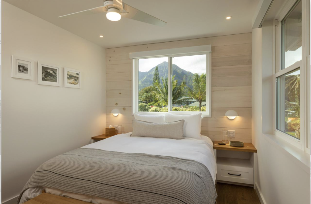 Each air-conditioned cottage is thoughtfully designed to create a relaxed yet elevated stay. Wake up to peaceful river and mountain views, enjoy slow mornings on your private lanai, and unwind in a setting that blends modern comfort with natural beauty. With rich farmland, emerald mountains, and calm riverfront surroundings, this Hanalei vacation rental captures the essence of Kauai’s North Shore lifestyle.