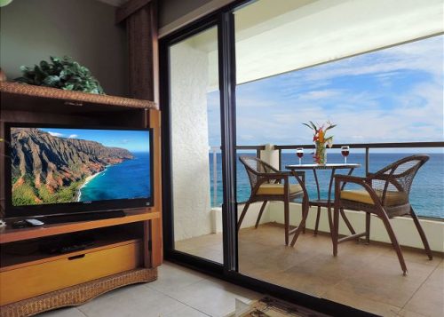 POIPU CONDO VACATION RENTAL: Kuhio Shores 412 is a beautifully appointed 1-bedroom, 1-bathroom oceanfront condo located on the fourth floor of the Kuhio Shores condominium, in the sunny Poipu area of Kauai. Perched on a promontory, this four-story complex offers water views on three sides, providing some of the best ocean views, swimming, and snorkeling in Poipu. This condo is the perfect escape for couples looking for a memorable Kauai experience.