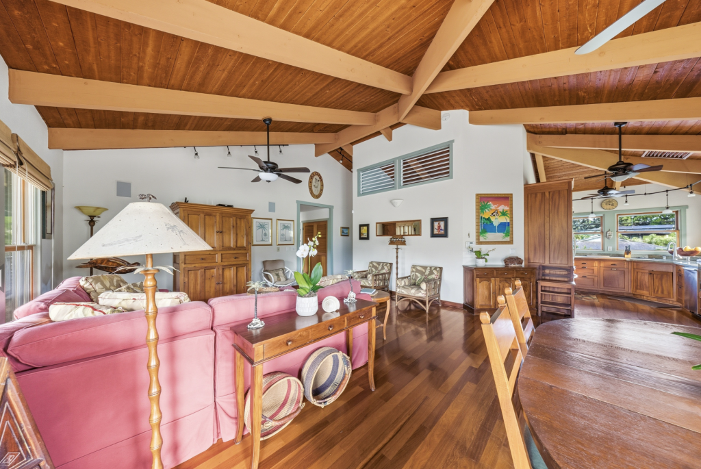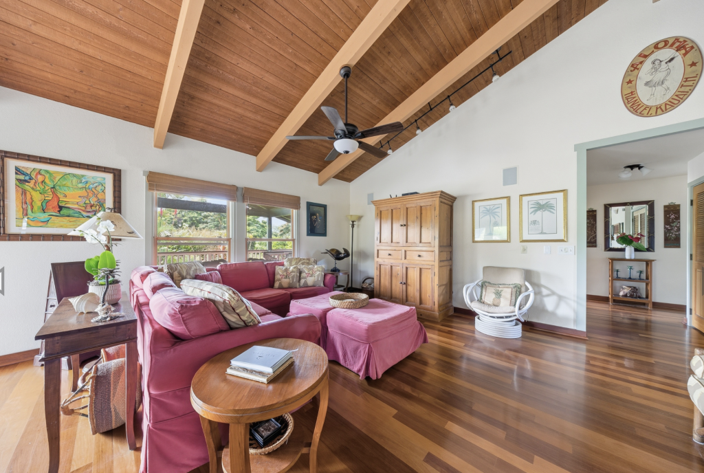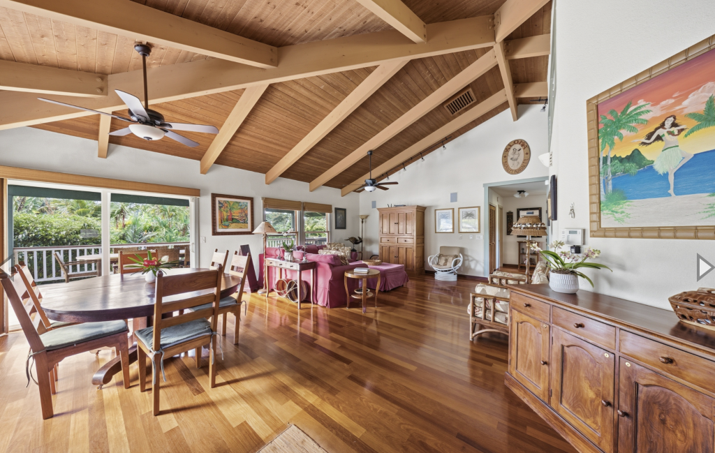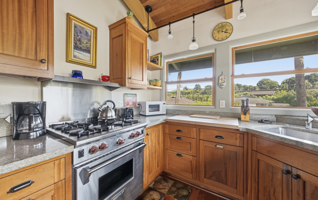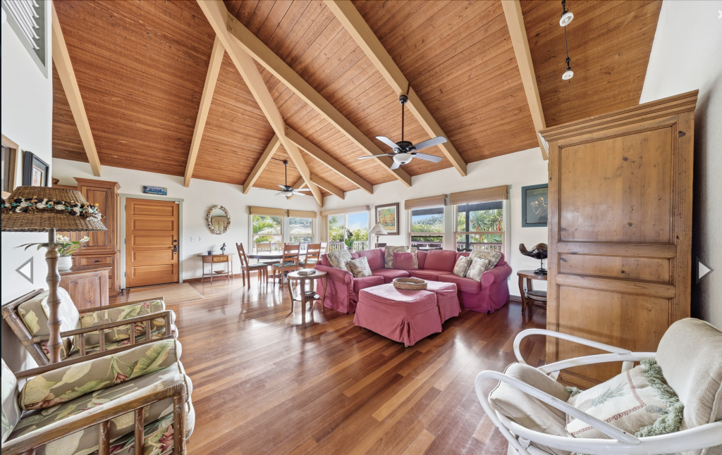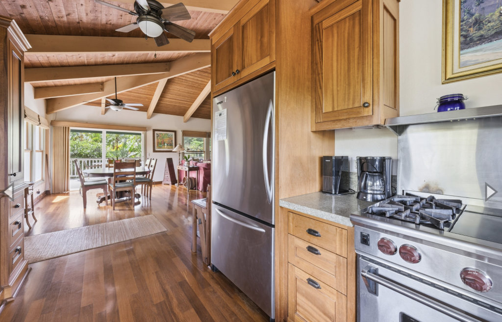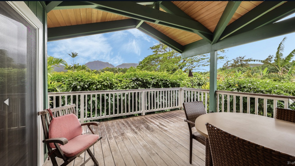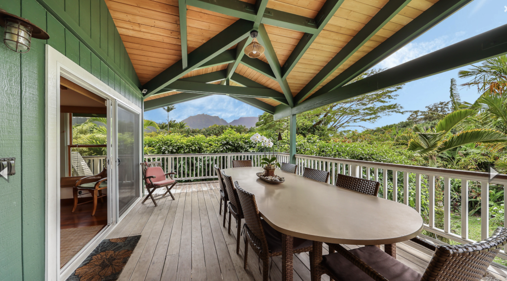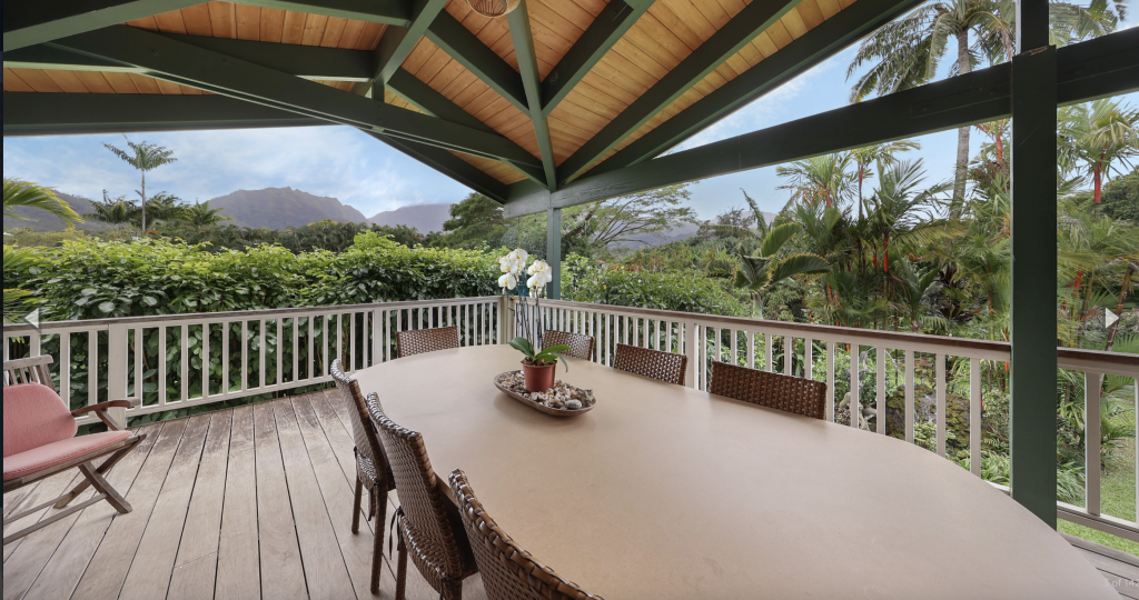 HANALEI, KAUAI VACATION RENTAL:  This “Little Garden by the Sea” (Mala Pua Ma Ke Kai) is a sweet spot in the heart of Hanalei. 3 bedrooms, 2 baths. Come and get your big dose of Polynesian Paralysis – it’s hard to resist. The home is perfectly situated between Hanalei Bay and the quaint town of Hanalei. The natural setting and the gardens that surround the home will bring a sense of serenity, privacy and joy for your family’s special time together.