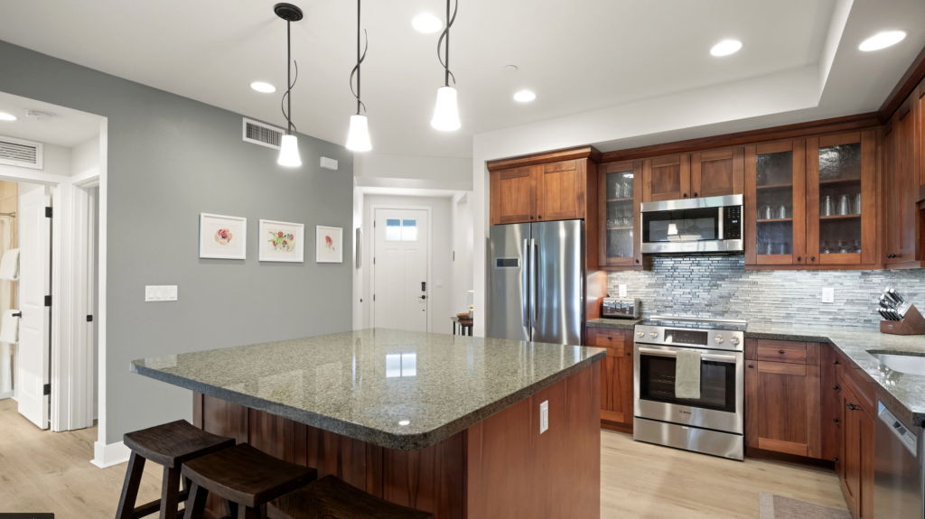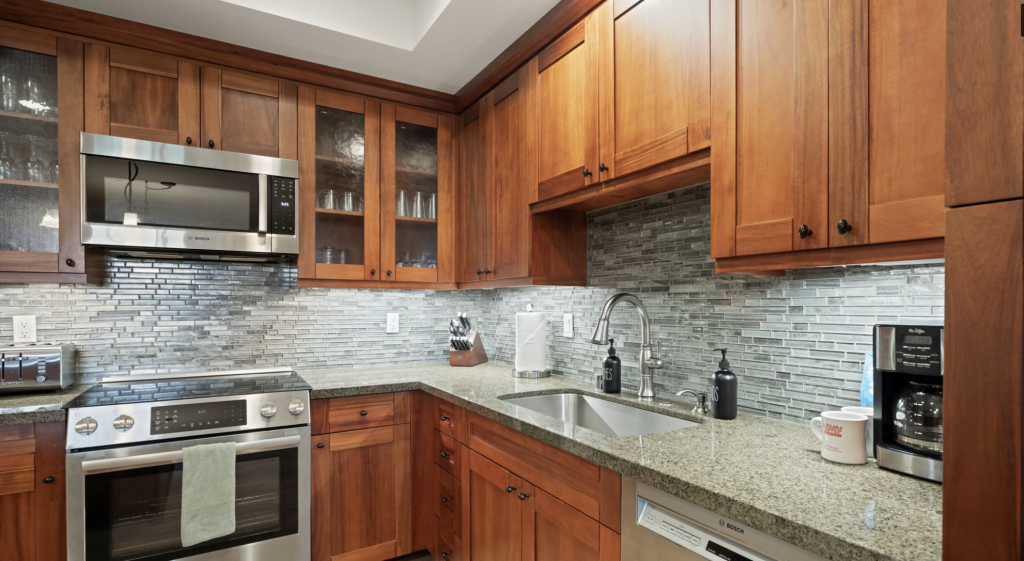 Fully equipped kitchen with granite counters and stainless appliances