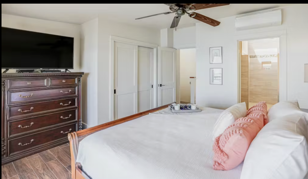 Flat screen TV in primary bedroom